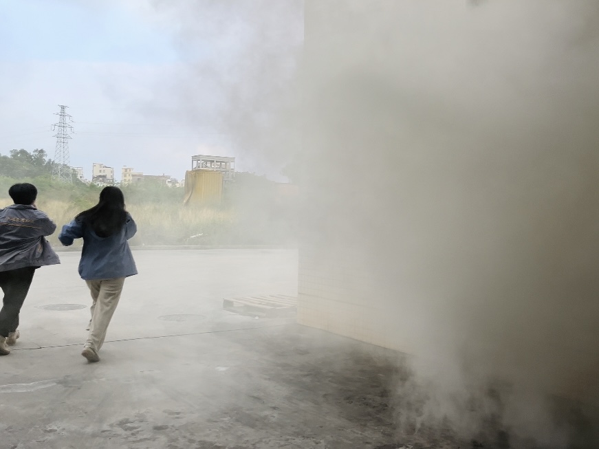 在疏散小組的指揮下,全體員工迅速、有序地撤離到倉庫外物流園一樓的空地上。整個(gè)疏散過程緊張有序,達(dá)到了預(yù)期效果。在實(shí)操技能體驗(yàn)環(huán)節(jié),采用了互動(dòng)式體驗(yàn)的方式,由質(zhì)量部介紹滅火器的種類、適用范圍和正確使用方法以及消防面罩的結(jié)構(gòu)、功能及佩戴方法。員工們輪流操作干粉滅火器,成功撲滅模擬火源,確保每位職工都能掌握基礎(chǔ)消防器材的使用技巧。